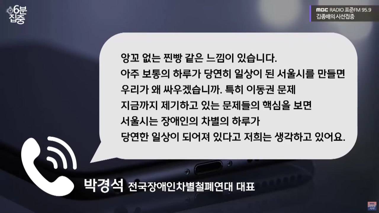"서울시는 장애인 차별의 하루가 당연한 일상이 되어 있다“는 박경석 대표님의 말처럼, 서울시가 말하는 ‘아주 보통의 하루’는 여전히 장애인에겐 먼 이야기입니다.